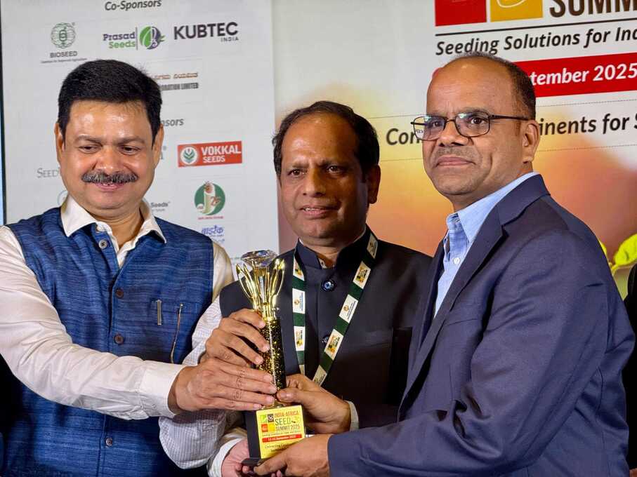 హైదరాబాద్లో జరిగిన ఇండో-ఆఫ్రికా సమ్మిట్లో తెలంగాణ సీడ్ సర్టిఫికేషన్ అథారిటీ (టీఎస్సీఏ) విత్తన పరీక్ష-ధ్రువీకరణ ఎక్సలెన్సీ అవార్డును గెలుచుకుంది. భారత ఆహార వ్యవసాయ కౌన్సిల్ (ఐసీఎఫ్ఏ) ఆధ్వర్యంలో జరిగిన ఈ సదస్సులో ప్రపంచవ్యాప్తంగా విత్తన రంగంలో విశేష సేవలందించిన సంస్థలకు ఈ అవార్డును అందజేశారు. అందులో భాగంగా తెలంగాణ సీడ్ సర్టిఫికేషన్ అథారిటీ డైరెక్టర్ డాక్టర్ కేశవులు అవార్డు అందుకున్నారు. గ్లోబల్ సీడ్ హబ్గా ఎదుగుతున్న తెలంగాణకు ఇది గర్వకారణం.