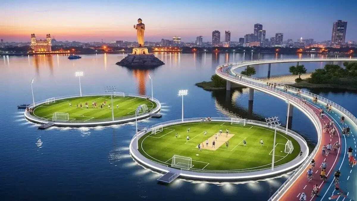 హైదరాబాద్ ప్రజలకు తెలంగాణ ప్రభుత్వం శుభవార్త చెప్పింది. విశ్వనగరంగా శరవేగంగా అభివృద్ధి చెందుతున్న నగరానికి మరిన్ని కొత్త హంగులు తీసుకురావాలని ప్రభుత్వం నిర్ణయించింది. హుస్సేన్సాగర్ నీటిపై ఫ్లోటింగ్ గ్రౌండ్స్ (తేలియాడే మైదానాలు) ఏర్పాటు చేయాలని ప్రతిపాదించింది. దీంతో పర్యాటక రంగం మరింత పుంజుకుంటుందని అధికారులు భావిస్తున్నారు. ఈ ప్రాజెక్టు పూర్తయితే హైదరాబాద్ వాసులు నీటిపైనే ఫుట్బాల్, బాక్స్ క్రికెట్ వంటి క్రీడలు ఆడుకునే అరుదైన అవకాశం దక్కుతుంది. ఇప్పటివరకు ఇలాంటివి సింగపూర్ వంటి విదేశాల్లోనే చూసిన మనం… ఇకపై వాటిని మన నగరంలోనూ చూడొచ్చు. హుస్సేన్సాగర్ను అంతర్జాతీయ పర్యాటక కేంద్రంగా మార్చేందుకు ప్రభుత్వం ఈ నిర్ణయం తీసుకుంది.