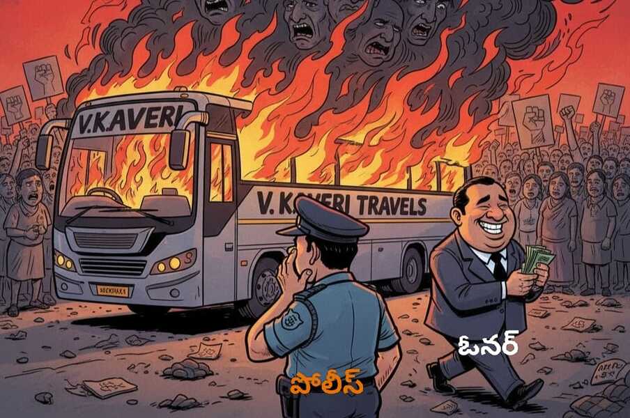 కర్నూలు బస్సు దగ్ధంలో 19 మంది సజీవ దహనం అయితే వి.కావేరి యాజమాన్యాన్ని రెండు రాష్ట్ర ప్రభుత్వాలు టచ్ చేయడానికి ఎందుకు వెనకాడుతున్నాయి? వి కావేరి ట్రావెల్స్ యాజమాన్యాన్ని ఇప్పటివరకు ఎందుకు అరెస్ట్ చేయలేదు? ఈ దుర్ఘటనకు కేవలం డ్రైవర్ను మాత్రమే పోలీసులు అరెస్టు చేశారు. బస్సులో అనేక లోపాలకు, నిబంధనల ఉల్లంఘనలకు యాజమాన్యానిదే పూర్తి బాధ్యత కాదా? చిన్నపాటి గొడవలకే సామాన్యులను అరెస్టులు చేసి జైలుకు పంపించే ప్రభుత్వాలు… ఇంతటి ఘోరానికి కారణమైన బస్సు యాజమాన్యంపై చర్యలు తీసుకోకపోవడంలో ఆంతర్యం ఏంటని పలువురు ప్రశ్నిస్తున్నారు. యాజమాన్యానికి రాజకీయ పలుకుబడి ఉందా అన్న చర్చ కూడా ప్రస్తుతం జోరుగా సాగుతోంది.