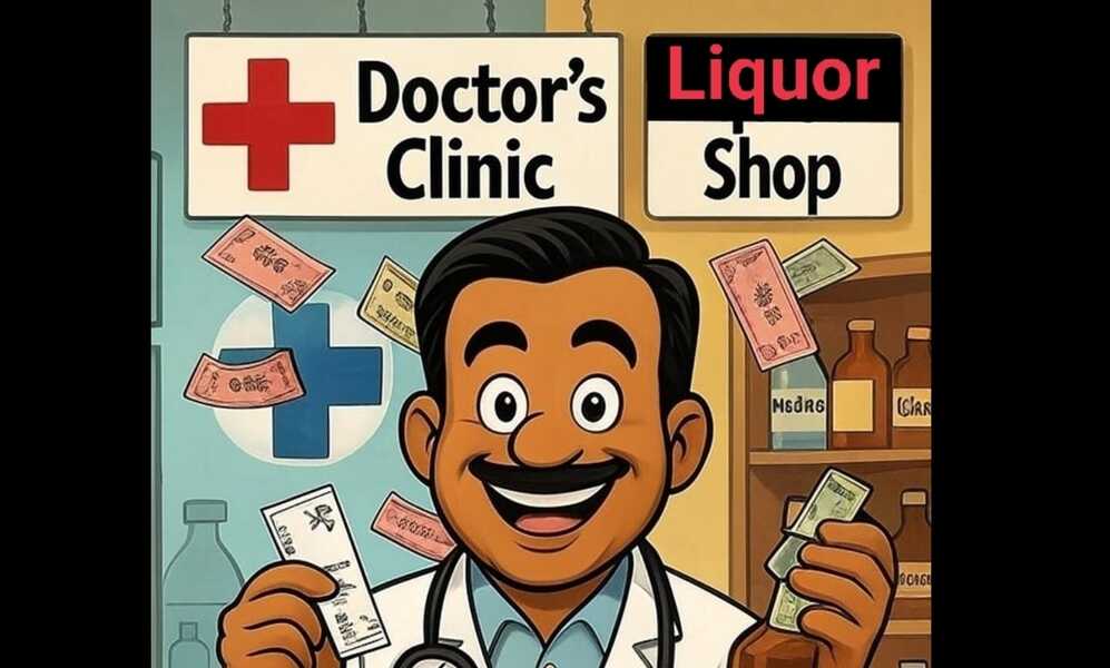 ఇంతకాలం జబ్బులతో బాధపడేవారికి మందు (మెడిసిన్) ఇస్తూ వచ్చిన ఈ డాక్టరయ్య… ఇకపై మరో రకమైన మందు (లిక్కర్) కూడా అమ్ముతారు. ఒకవైపు ఆరోగ్యం పాడుచేసుకున్న వారికి వైద్యం… మరోవైపు లిక్కర్ షాపులో ఆరోగ్యం పాడుచేసుకునేందుకు సరుకు – రెండు రకాల పనులు చేస్తారు. ఇది అతనికి రెండు కోణాల్లో ఆదాయాన్ని డబుల్ చేస్తుంది. ఇకపై ఆయన దగ్గరకు వచ్చే కస్టమర్లు తమకు ఏ ‘మందు’ కావాలో కాస్త వివరంగా చెప్పాల్సి ఉంటుంది.